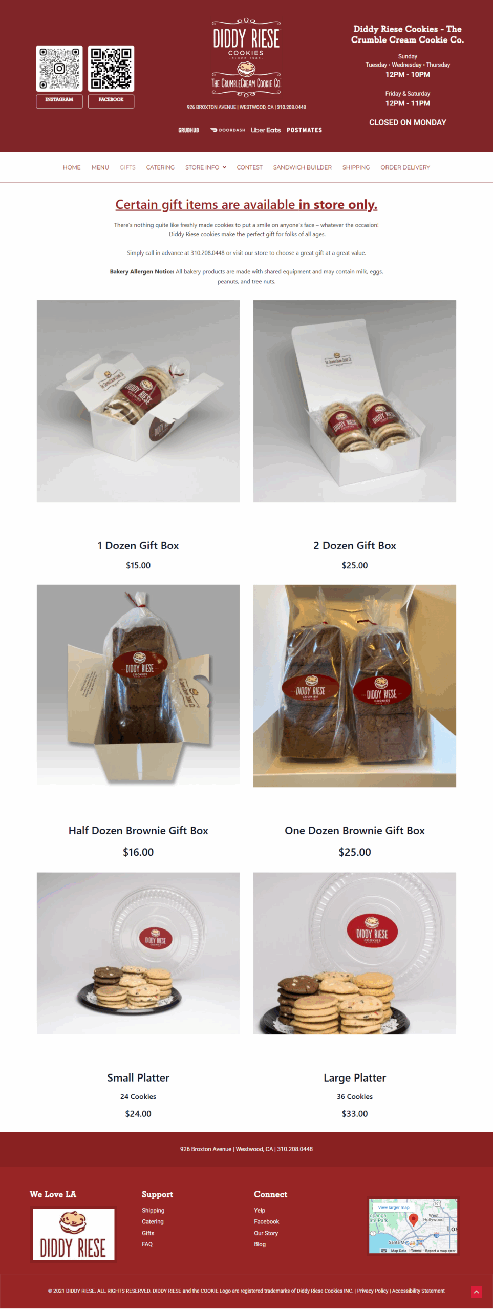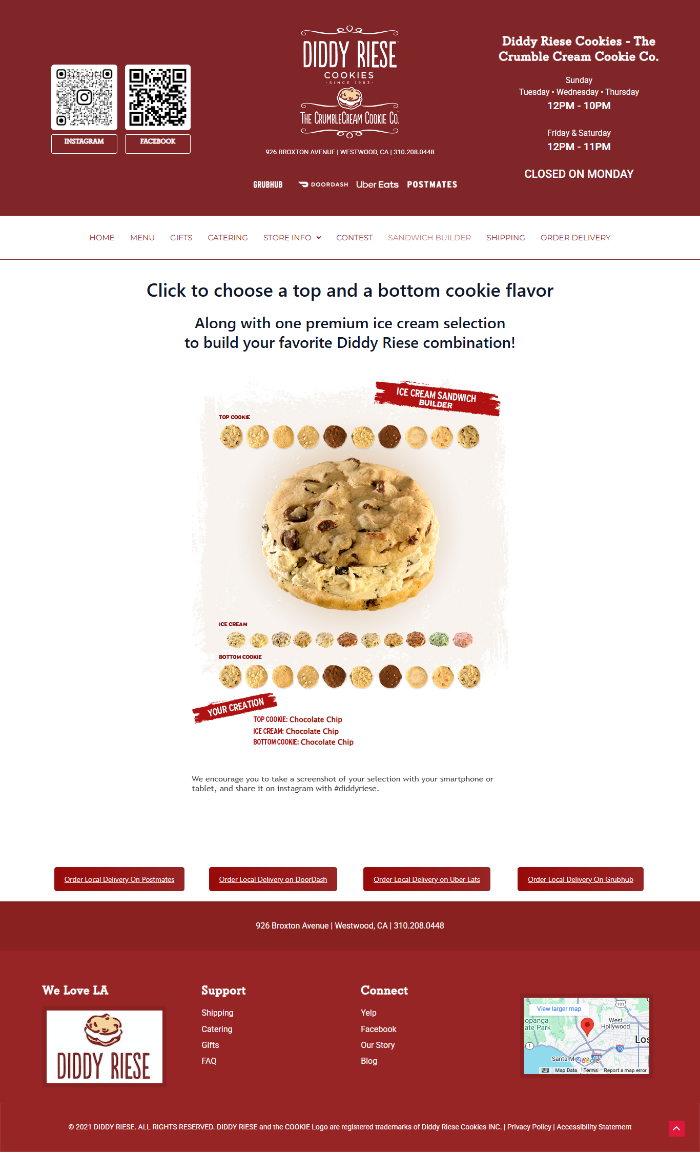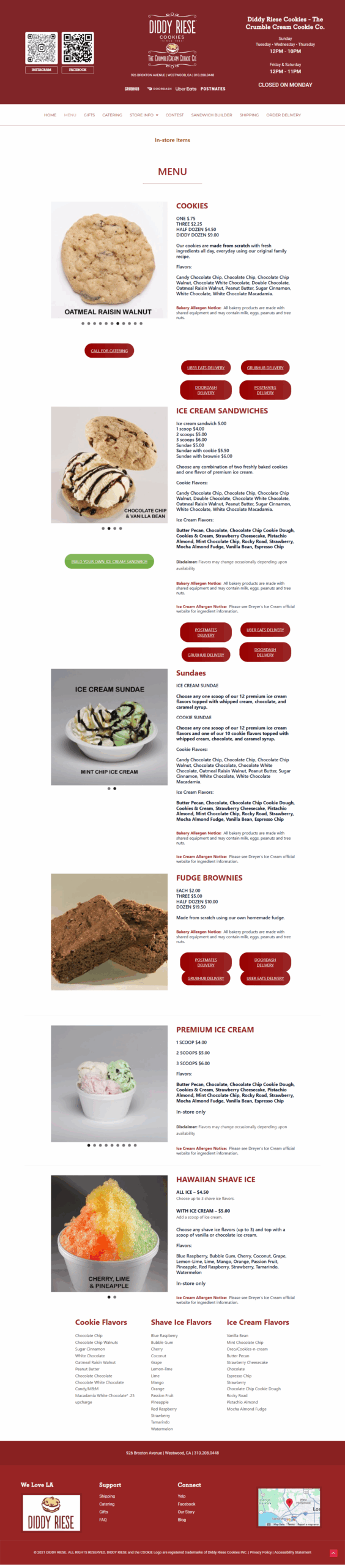 Stop by today and try one of our famous ice cream sandwiches, cookies or brownies. And, please think of Diddy Riese when planning your next occasion. We would be delighted to help make your event a great success!